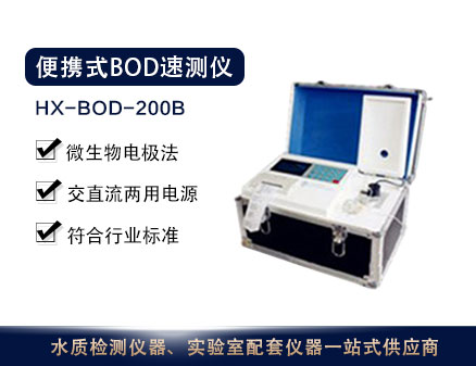 HX-BOD-200B型便攜式BOD速測儀采用交直流兩用電源,內置大容量電池,充一次電可連續使用三十小時,既可在實驗室內使用又滿足了在野外無電地區現場檢測的要求,尤其對水污染突發事件的測評,提供了可靠有力的保障。是生物科學與現代電子技術于一體的高科技產品。液體流路自動切換裝置,標準樣及待測未知水樣的測定可由儀器自動控制完成,無須外接設備,自動清洗方便快捷。HX-BOD-200B型便攜式BOD速測儀符合國家環保總局有關行業標準,測試方法編入《水和廢水分析方法》第四版,且列為HJ/T86-2002微生物傳感器快速測定的標準方法。