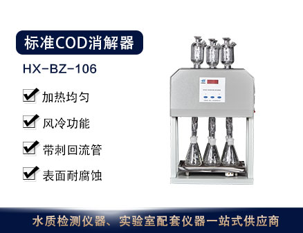 HX-BZ-106型標準COD消解器采用微機技術進行定時控制加熱電爐,可對6個(標配)、10個(標配)250ML錐形消解回流裝置同時進行加熱(10個樣品為圓柱瓶)