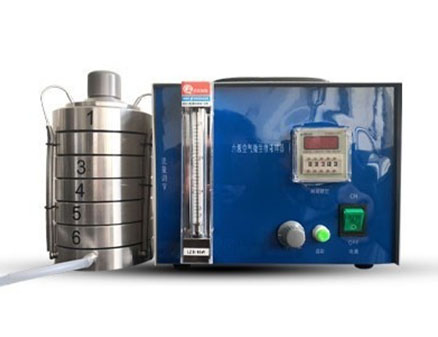 整個儀器是由撞擊器、主機(流量計)、定時器、三腳架組成。撞擊器是6層有微小孔眼的鋁合金圓盤。圓盤下放瓊脂平皿,每圓盤間有密封膠圈,在通過三個彈簧掛鉤把圓盤牢固地聯(lián)在一起。每個圓盤上有400個成環(huán)行排列、逐層減小、尺寸準確的小孔,標準采樣流量為1立方呎(28.3L/min)。當(dāng)含有微生物粒子的氣流進入Z上層的采樣口后,由于氣流的逐層增高,不同大小的微生物粒子按空氣動力學(xué)特征分別撞擊在相應(yīng)的瓊脂表面上。捕獲在各級上的粒子大小范圍是由該級孔眼的氣流速度和上一級的粒子截阻率而決定的。第1、2級類似人的上呼吸道捕獲的粒子,第3~6級類似人的下呼吸道捕獲的粒子,這就相當(dāng)程度上復(fù)制了這些粒子在呼吸道的穿透作用和沉著部位。